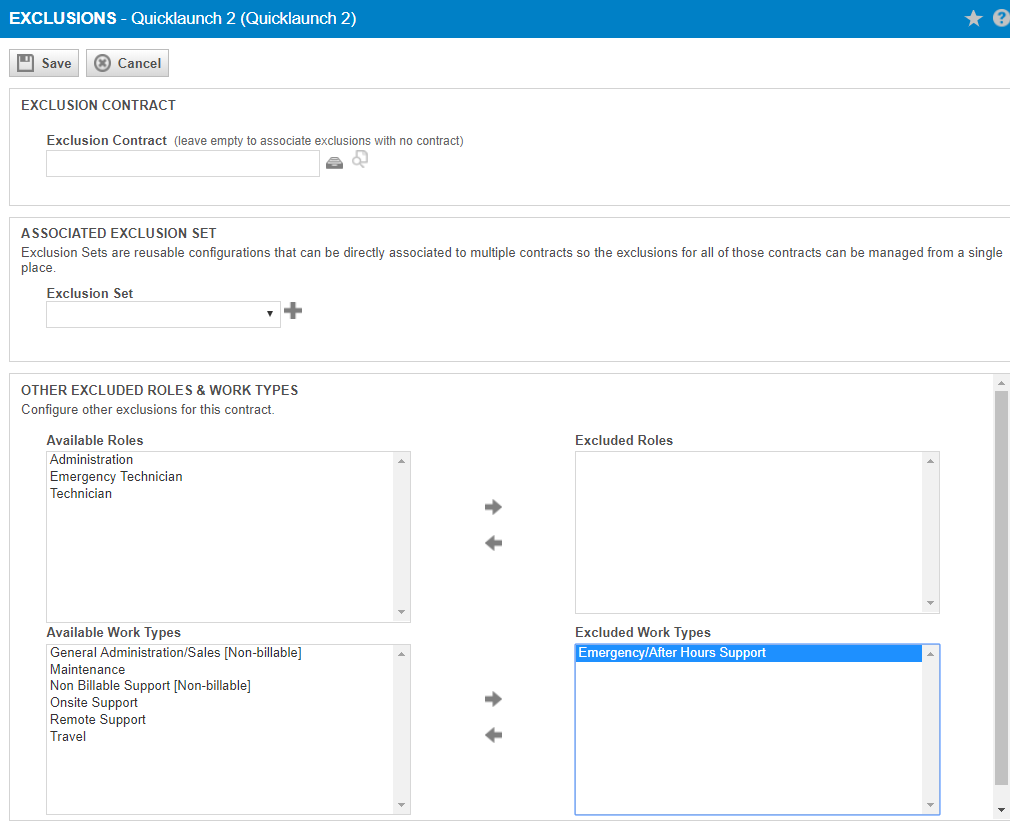 EXAMPLE You exclude Emergency/After Hours Support from your default Recurring Services contract.