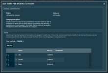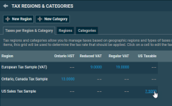 - Click the Regions and Categories tabs and delete all regions and categories you won't be needing. Most likely, you will have one tax sample left.