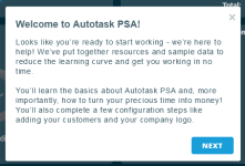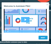 - Click Next to start the onboarding. Click the Play button to start the Welcome to Autotask video: