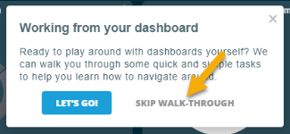 Clicking Skip will bypass the walk-through content for that module without canceling the overall onboarding experience. If video content is available for any part of a module you'd like to skip, you'll still be offered the opportunity to view it.