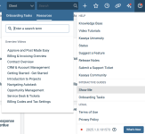 Click the help menu (?) > Onboarding Tasks to access the self-paced onboarding menu: