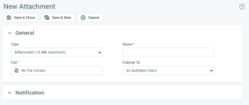 - Click Save & Close or Save & New. Your attachment is added to Autotask and emailed to the specified recipients.