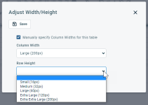 Adjust Width/Height | This option lets you select between several preset column widths and row heights. |