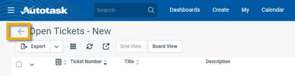 NOTE For chart type grids and grid type widgets, the widget itself is already in list format. Click an item in these widgets to open the item detail. Grid type widgets also include many other features found in standard Autotask tables. Refer to Working with grid type widgets.