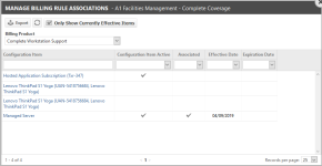 Associated | Displays a check mark if the contact or device is currently associated with the selected billing rule's billing product. |