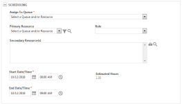Primary Resource | Select a Primary Resource for the ticket. The Primary Resource is the person who is responsible for the ticket. Only resources who are members of at least one queue will appear on the drop-down list. Using the filter Select the filter you would like to apply to the Primary Resource drop-down list. You can show resources for a department, workgroup, or role. When you select an option, the page closes, you are returned to the ticket, and the Primary Resource drop-down list contains only resources for the specified department, workgroup, or role. Using the Find Resource wizard You can use the |