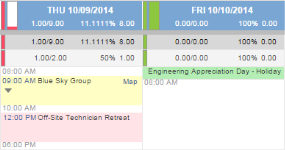 Yellow - Between 50% and 75% of the resources available time is scheduled. | |