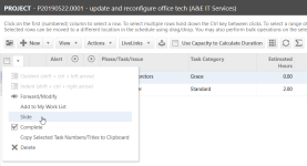 If you experience project delays or if your project is ahead of schedule, you can use the Slide Schedule tool to adjust the dates of multiple project schedule items at once.