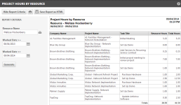 Details about tasks, tickets and regular time for specified resource(s) and a specified date range, sorted by resource or organization and project. This report shows both pre-billed and billed work. |