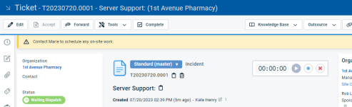 This alert appears at the top of the ticket when adding a new ticket for this organization. |