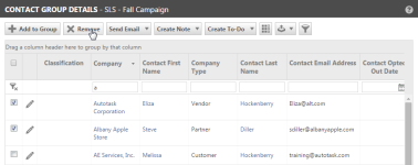 1. Use the column filters or Advanced Filter to locate the contacts you want to remove. Refer to Using the advanced filter.