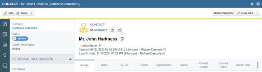 LiveLinks | LiveLinks are links from Autotask that pass information to an external application or website. Click to access the active LiveLinks configured by your Autotask Administrator. Click a link to access the external application, web sites, or customized link within Autotask. Refer to LiveLinks. |