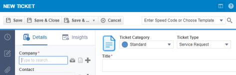 Click to toggle between 2-panel view and tabbed panel view. When the icon is clicked, the Details and Insights panels are displayed to the left of the Main panel in a tabbed view. When the icon is not clicked, the Details panel is displayed on the left, and the Insights panel is displayed on the right. If your browser window is less than 1230 pixels wide, the ticket page is automatically displayed on the tabbed view. |