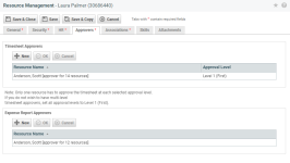 NOTE  Set up resources who will be timesheet and expense report approvers first, beginning with the highest level approver. They will be assigned as approvers when you set up the other resources.