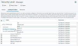 No Access | If selected, resources with this security level will not see the folder in the list on the LiveReports Designer - Report List view. |