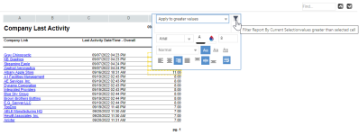 Once you have applied conditional formatting, a filter icon will appear on the mini-toolbar, giving you the option to filter the report by the current selection.
