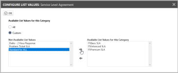 EXAMPLE Your organization has ten different service desk queues, but only four of those queues are used for on-site service tickets. If this ticket category is designed for on-site service tickets, there is no need for the queue menu to show all ten queues. In this column, you can limit the menu to the four queues that the ticket might be assigned to.