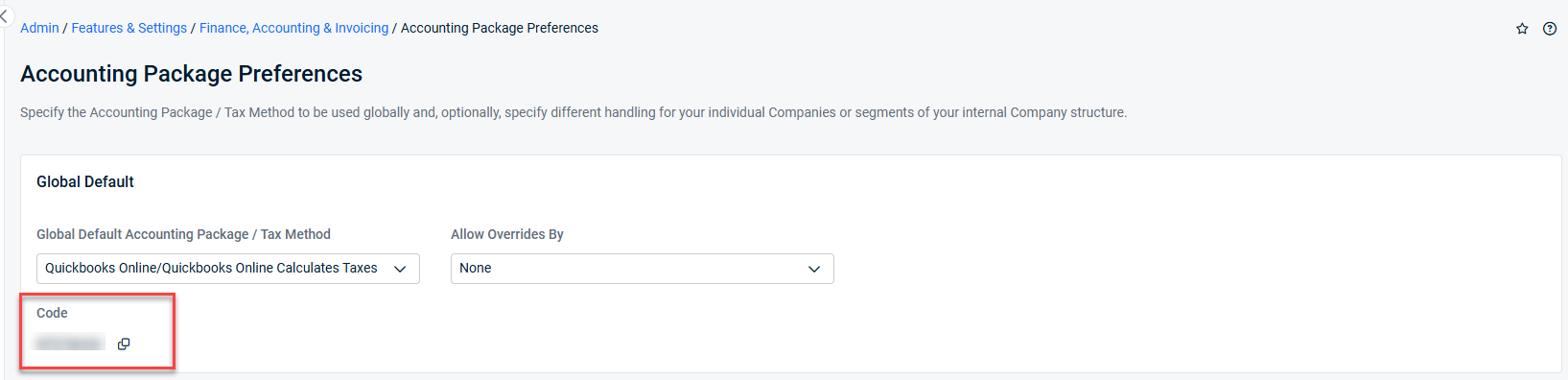 NAVIGATION Left Navigation Menu > Admin > Admin Categories > Features & Settings > Finance, Accounting, & Invoicing > Accounting Package Preferences